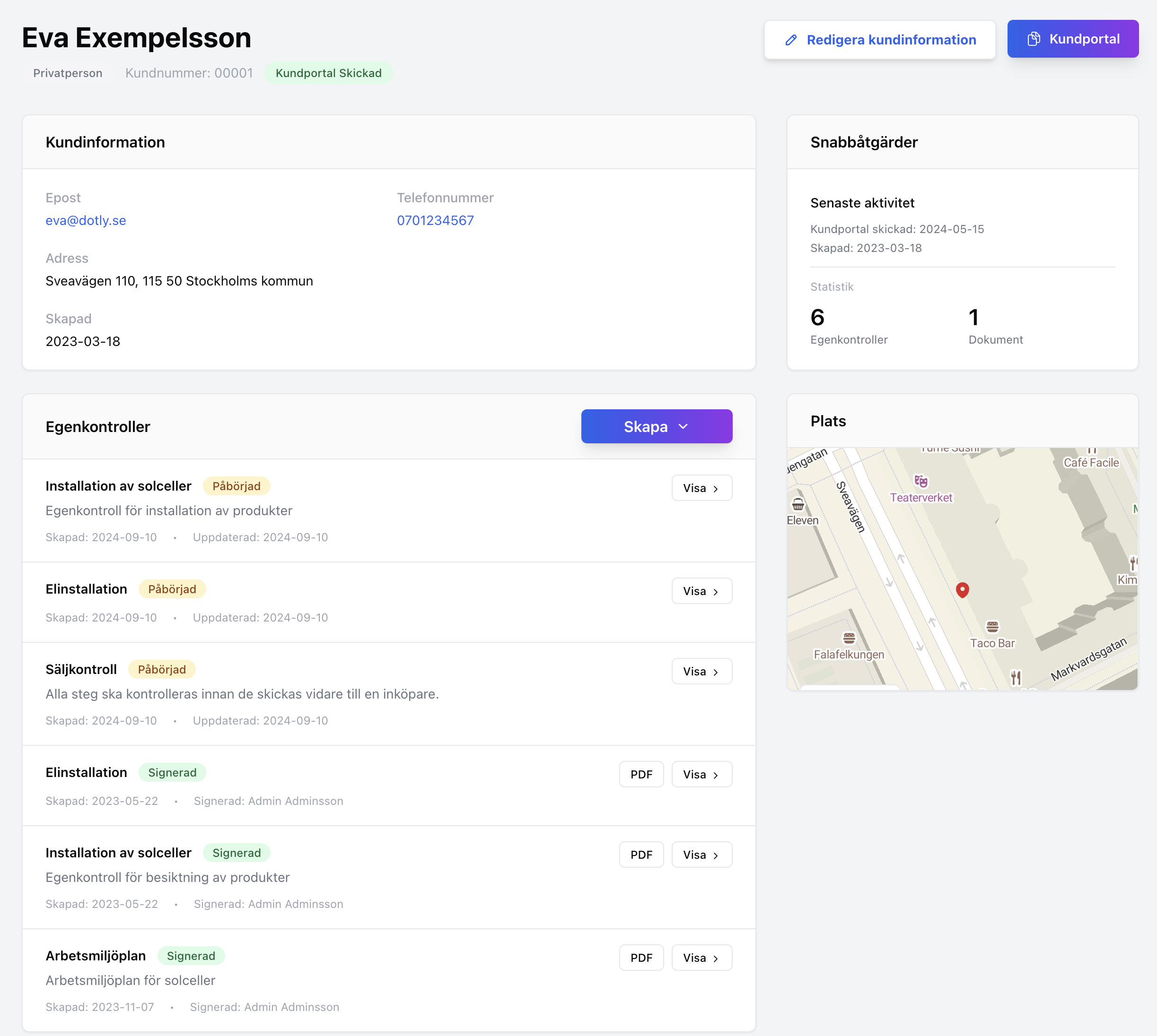 “Med hjälp av Dotly känns det tryggt att ha alla processer på ett ställe. Om en kund har en fråga kan vi enkelt gå tillbaka och ta fram just deras anläggning och se den informationen som behövs.”